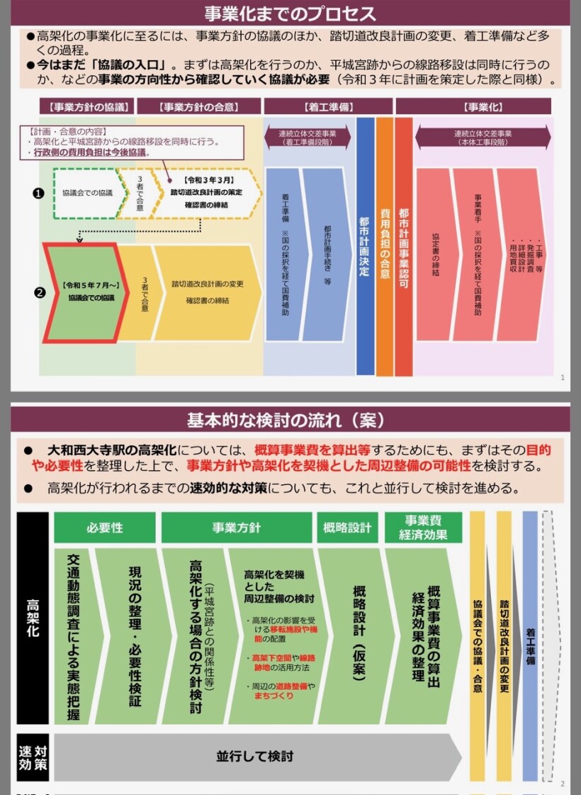 「大和西大寺駅・平城宮跡周辺の渋滞踏切道の解消に向けた協議会」での協議に向け必要